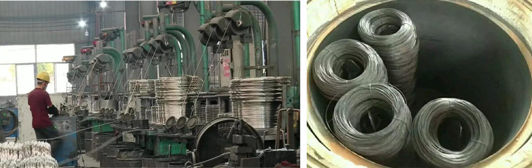 ④ Annealing and large wire drawing: Place the wire rod after roughening into an annealing furnace for tempering to reduce product hardness, eliminate residual stress, and reduce deformation; The annealed products are drawn using a water tank drawing machine. The water tank drawing machine is a small continuous production equipment composed of multiple drawing heads. Through step-by-step drawing, the drawing heads are placed in the water tank, and finally the alloy wire is pulled to the required specifications. oil, mainly for lubrication and cooling purposes. The engine oil will precipitate metal after prolonged use and needs to be replaced regularly. This process requires two steps according to product requirements. The wire diameter after the first annealing and drawing is about 2.9cm, and the wire diameter after the second annealing and drawing is about 1.17cm.