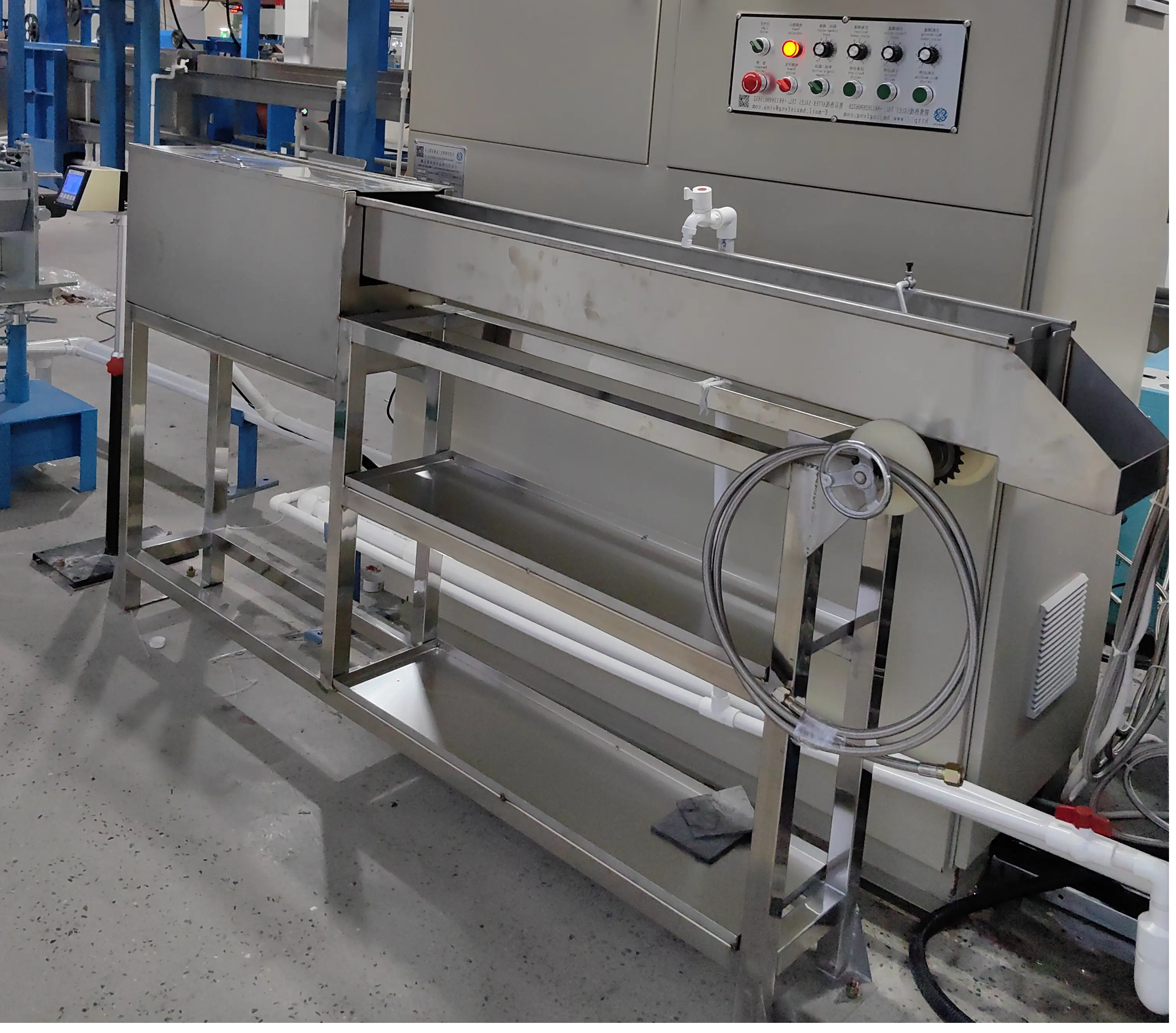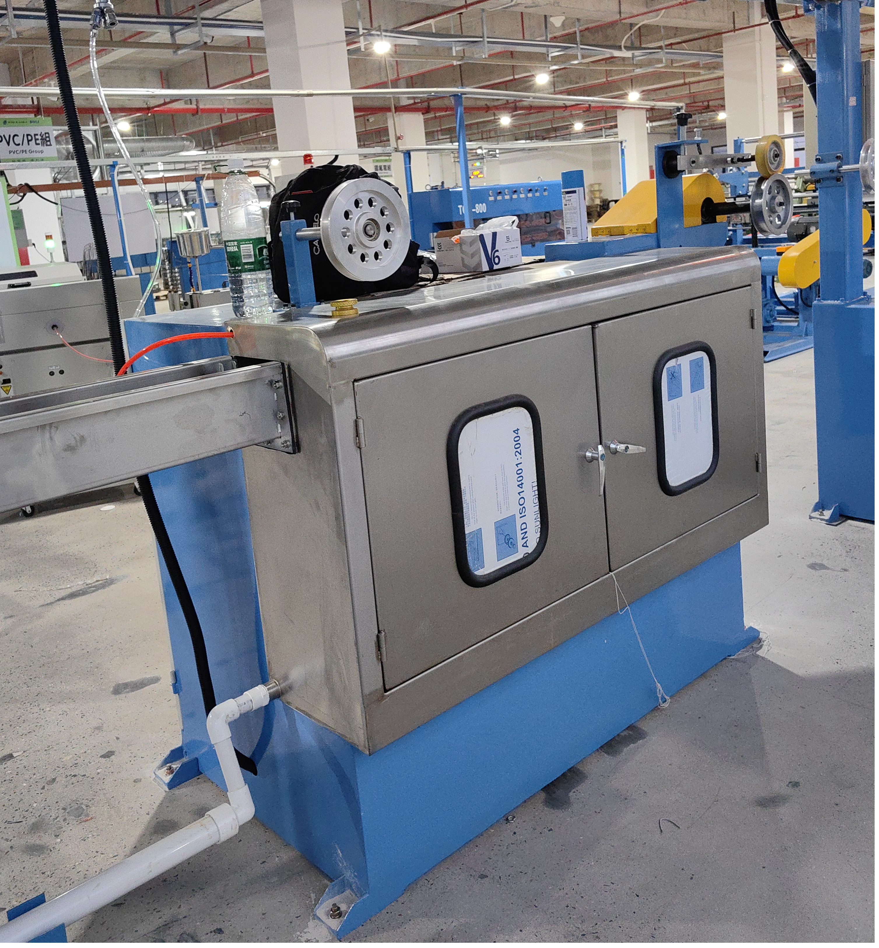 10-2. Traction wheels: Material - aluminum alloy, diameter Φ600mm (2 wheels)10-3. Water tank: Stainless steel sealed water tank, with 1 set of windows and water wipers10-4. Drive: AC380V 4KW AC motor + (See Image) frequency converter, linkage control with main machine10-5. Line speed: 400m/min, linkage control with main machine