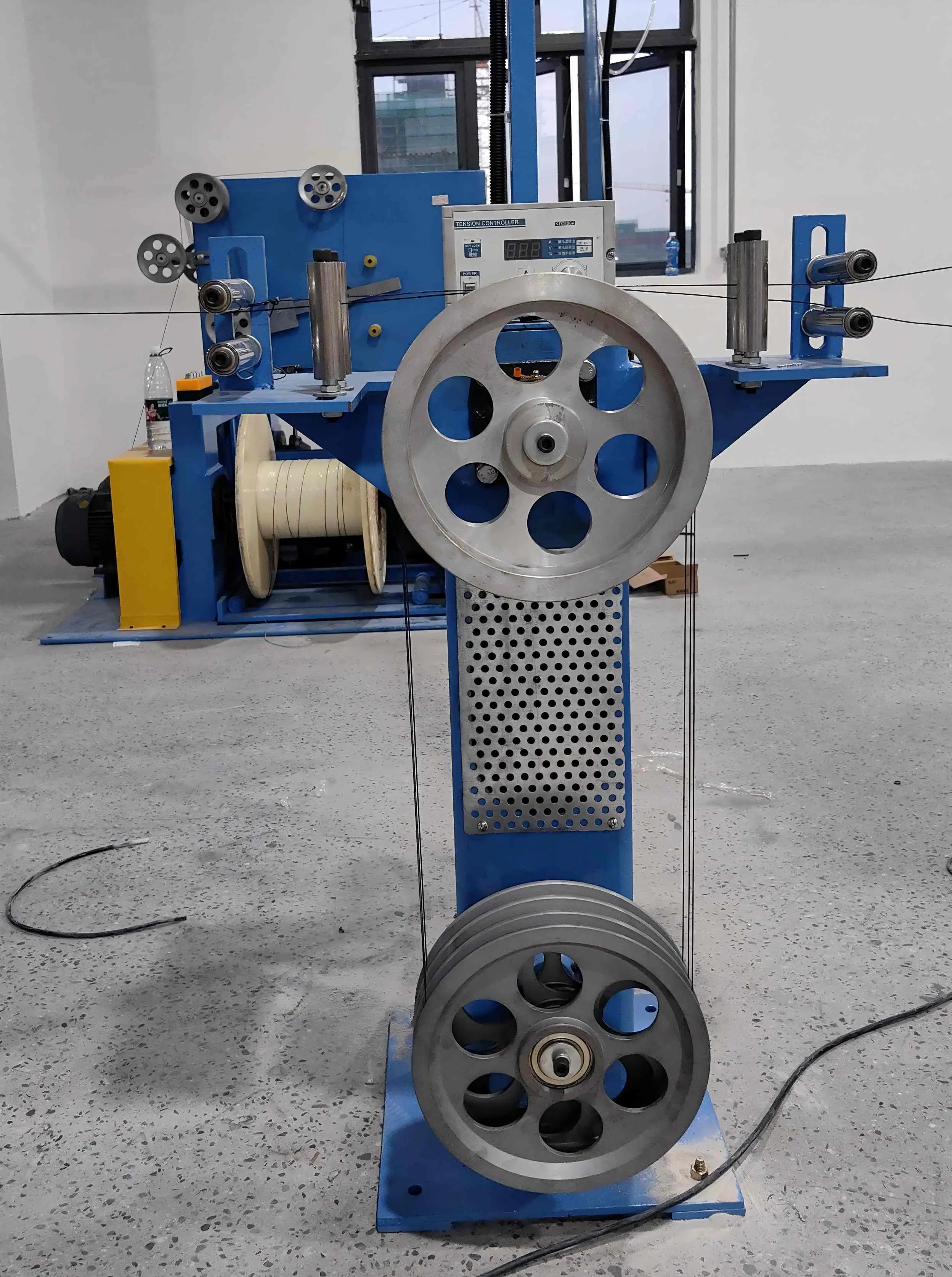 15-2. Frame: Channel steel and A3 steel plate welded assembly15-3. Drive: 2 units of AC380V 5HP motors, equipped with AC380V 5HP frequency converters; automatic take-up control via tension frame displacement detector15-4. Length counting: 6-digit electronic length counting, with automatic stop function15-5. Cable arrangement: Polished rod bearing control for cable arrangement; adjustable arrangement pitch and width; neat arrangement; linkage with take-up speed