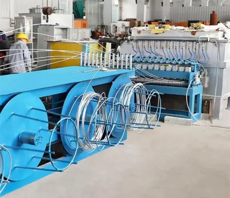 ④ Annealing and large wire drawing: Place the wire rod after roughening into an annealing furnace for tempering to reduce product hardness, eliminate residual stress, and reduce deformation; The annealed products are drawn using a water tank drawing machine. The water tank drawing machine is a small continuous production equipment composed of multiple drawing heads. Through step-by-step drawing, the drawing heads are placed in the water tank, and finally the alloy wire is pulled to the required specifications. oil, mainly for lubrication and cooling purposes. The engine oil will precipitate metal after prolonged use and needs to be replaced regularly. This process requires two steps according to product requirements. The wire diameter after the first annealing and drawing is about 2.9cm, and the wire diameter after the second annealing and drawing is about 1.17cm.